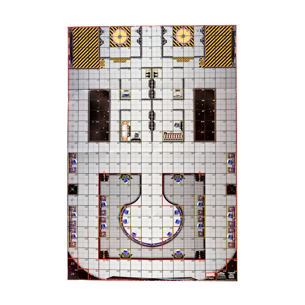 This kit also comes with a double-sided map that has each square individually labeled to make it easier to play HeroClix remotely. If both players have the same map from the Play at Home kit, they can have their own set up and follow along while playing.