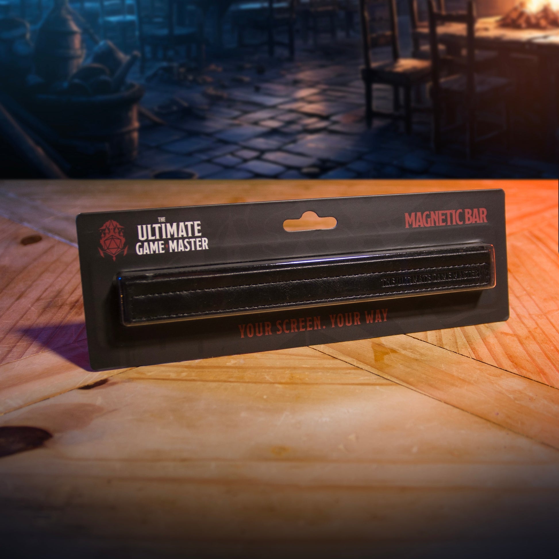 Need more space for charts, cards, and illustrations? These Magnetic Bars allow you to expand your Ultimate Game Master Screen beyond its standard configuration and display commonly-used or extra important gameplay information, NPC images, or any other rigid card-stock paper you need to display, magnetically to the top of your magnetic screen.