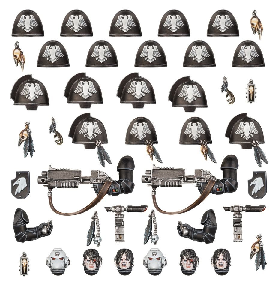 - 5x Raven Guard MK X power armour shoulder pads (designed for use with Hellblasters/Intercessors)
