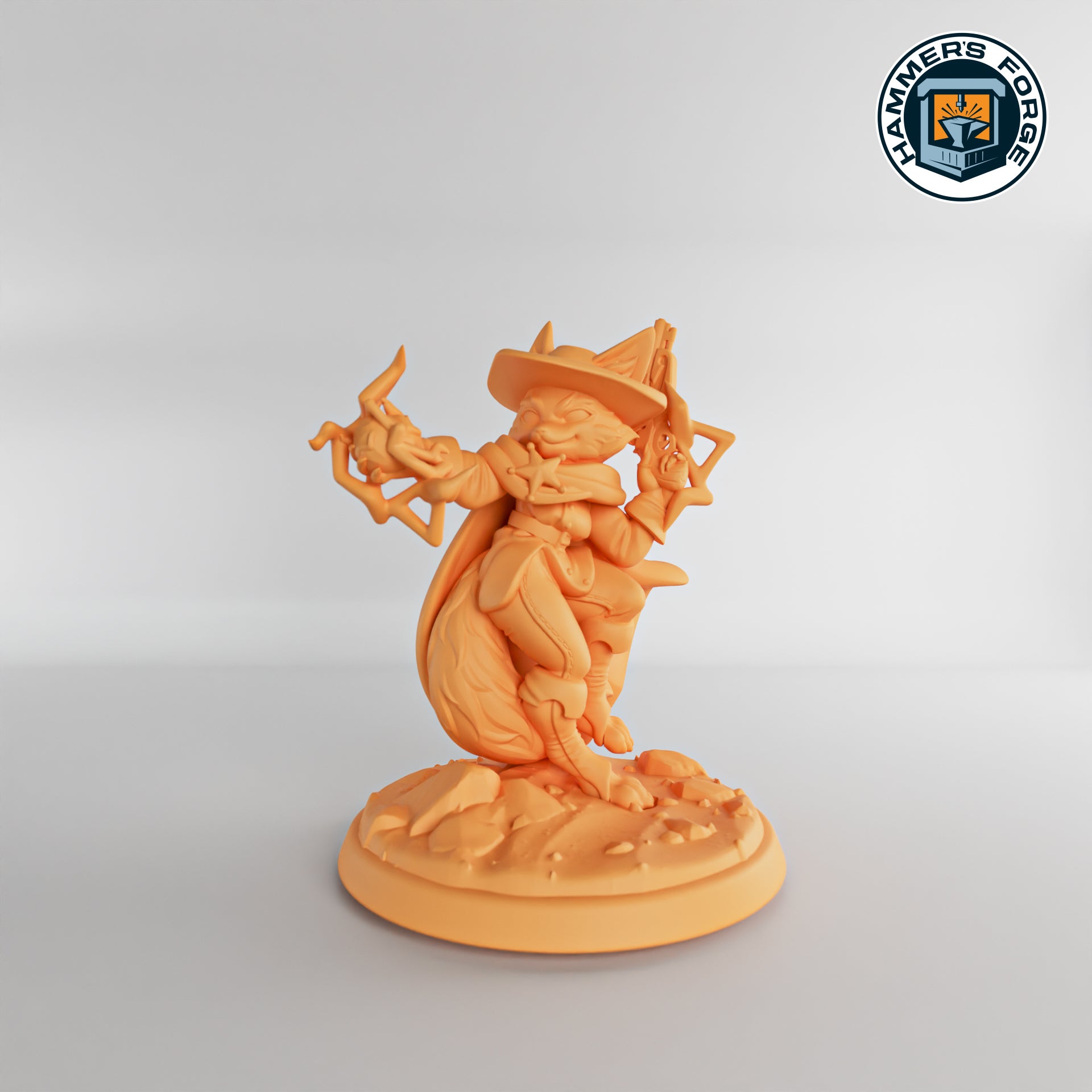 Western Deputy - Female Foxfolk - Twin Goddess Miniatures - D&D - TTRPG - 32mm/75mm Miniature - Pathfinder - Unpainted - Spell Effect
